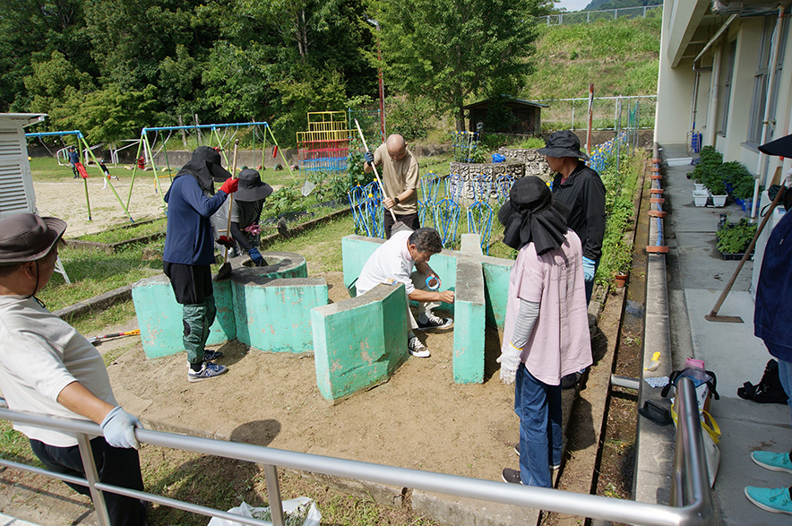 当時の卒業生たちが、50年の時を経て母校に集まり、補修作業を行ったのです。
