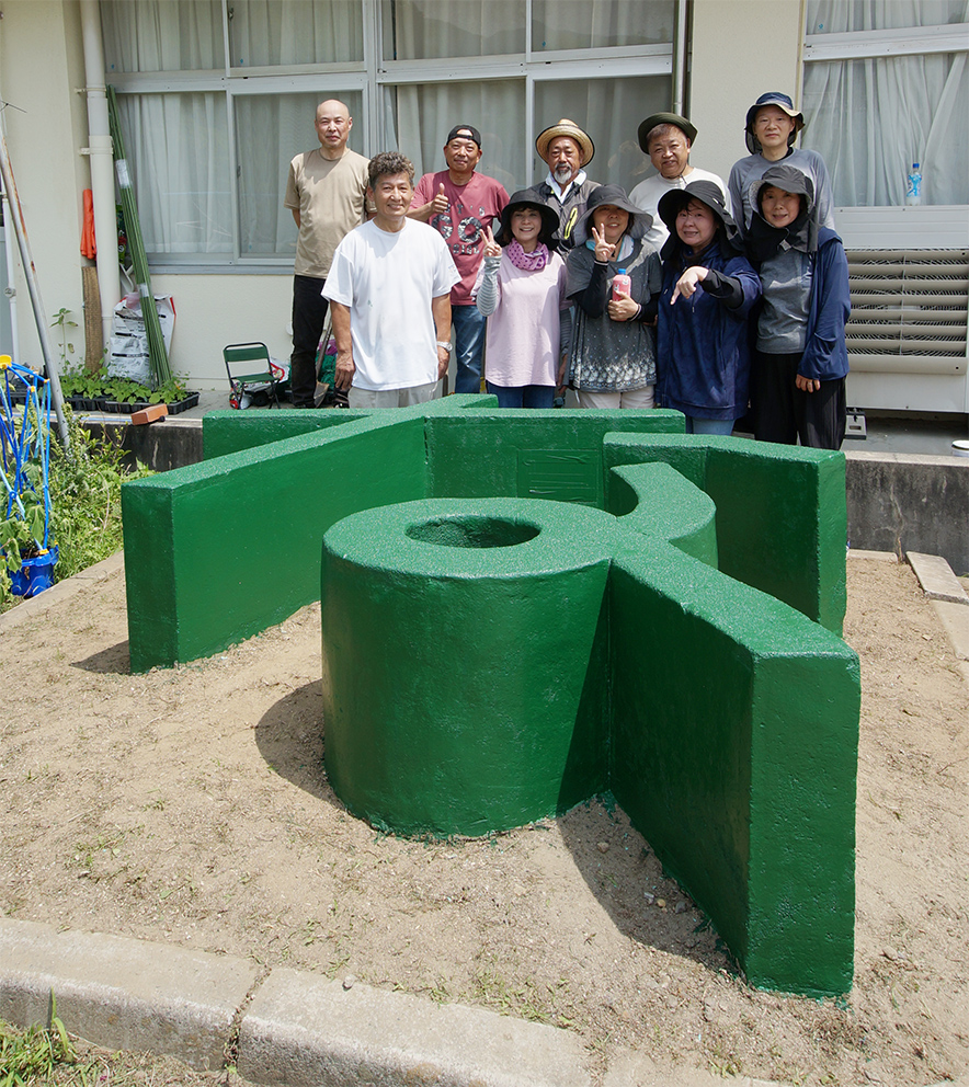 この石文字の緑色は、皆で話し合って決めた色です。
