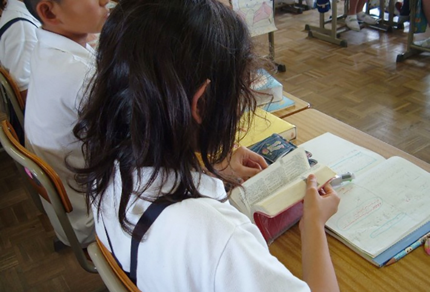 高学年では教科となり、読む・聞く・話す・書くの四技能を総合的に学びます。