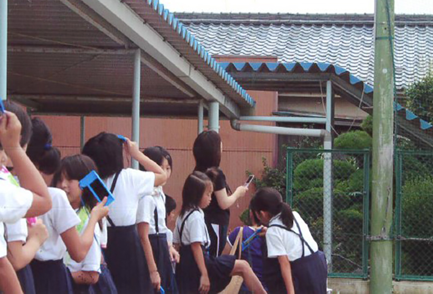 子どもたちは専用のグラスを使い、太陽が少しずつ欠けていく神秘的な光景を真剣に見つめていました。