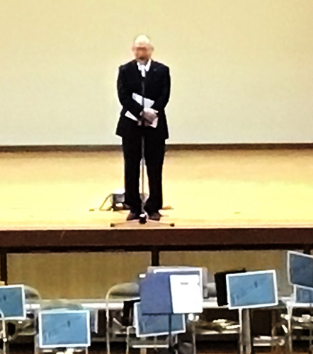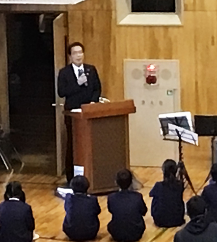 岡島校長先生の挨拶に続き、阿古市長から心温まるお祝いの言葉をいただきました。