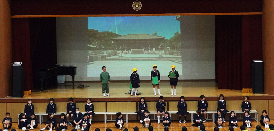 2年生は「當麻寺にはすてきなものがいっぱい」をテーマに、地域の宝である當麻寺について発表しました。