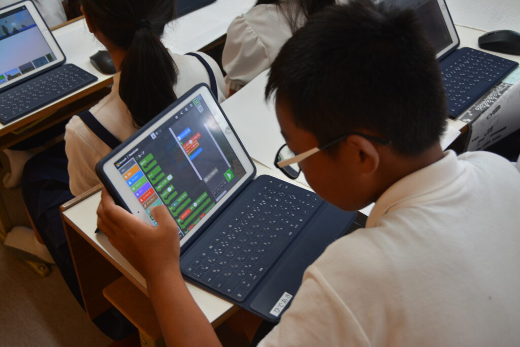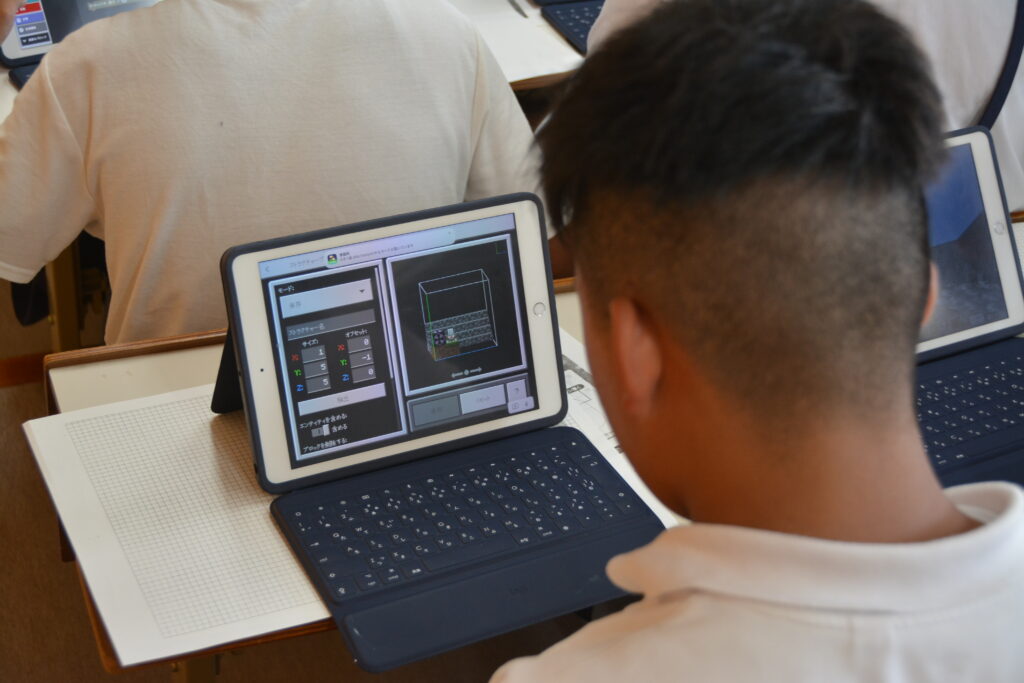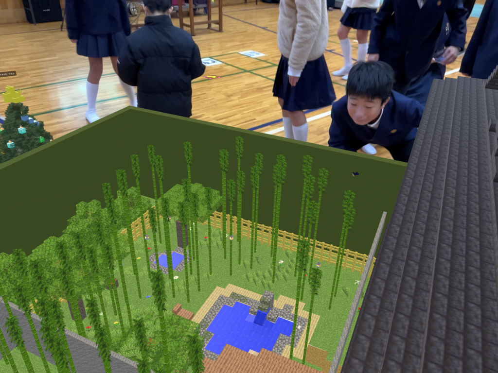 5年生は、先輩たちが創り上げた緻密なデジタル空間を、実際に自分のタブレット端末で間近に見ることができました。