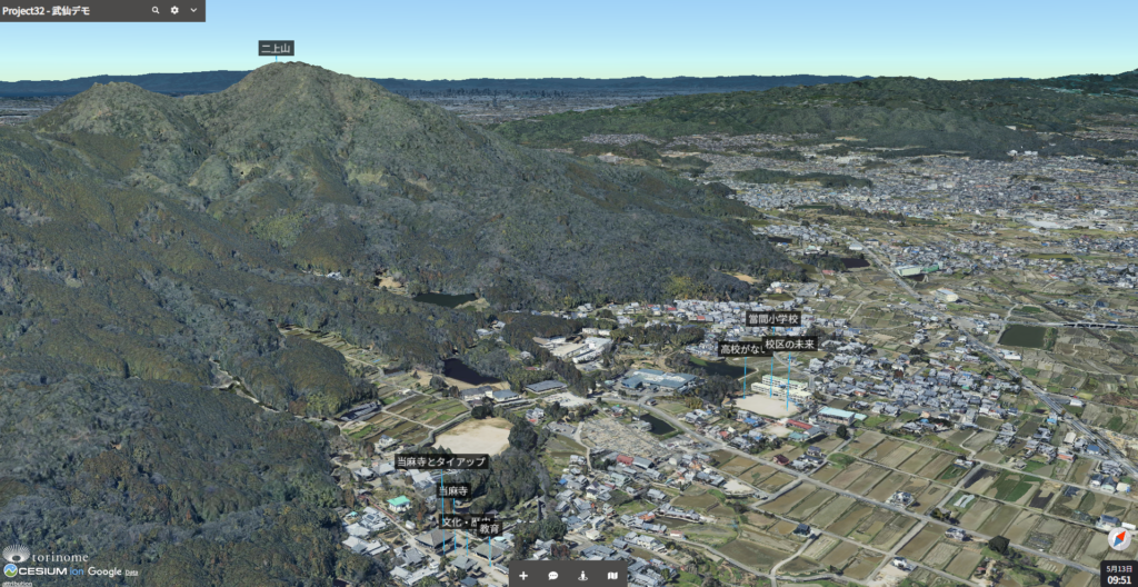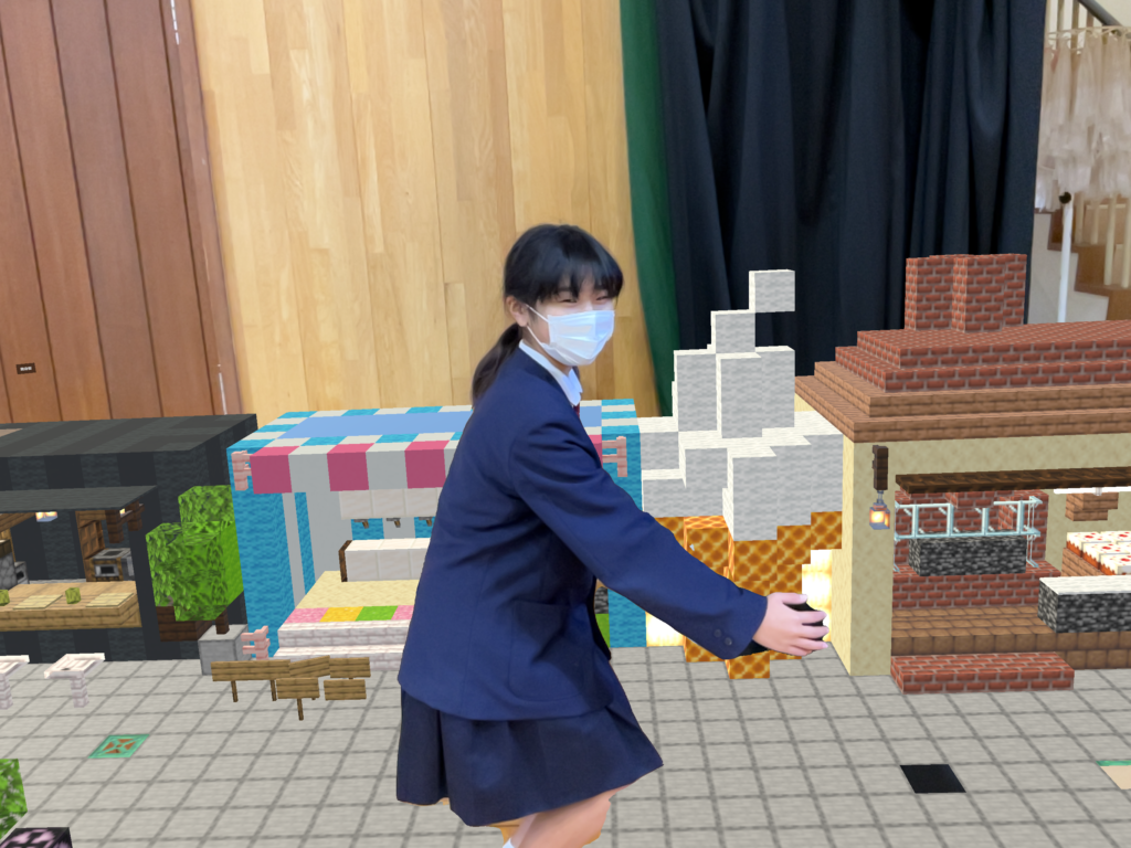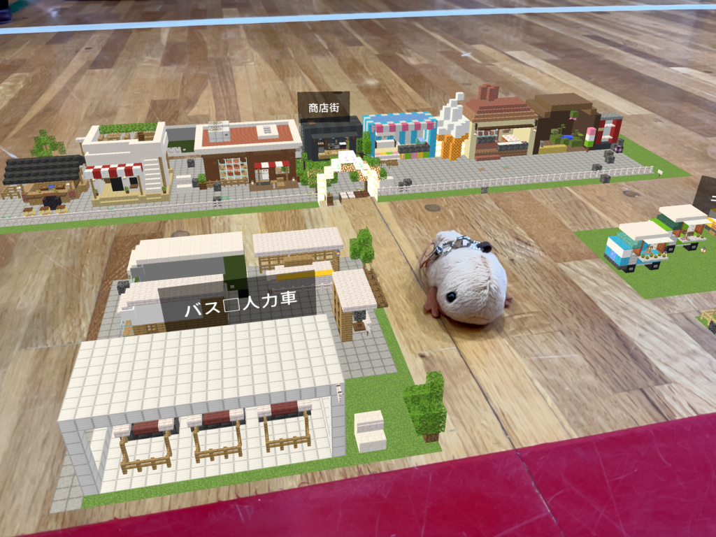 単にゲームの中で街を作るだけでなく、実際の當麻の地形や街並みが再現されたデジタル空間に、子どもたちが考案した施設を正確に配置しました。