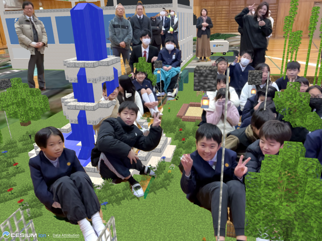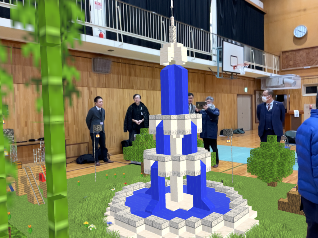 今回の発表会で特筆すべきは、「実際のデジタル地図上に、自分たちがマインクラフトで制作した建物をはめ込む」という、日本で初めての先進的な手法を取り入れたことです。